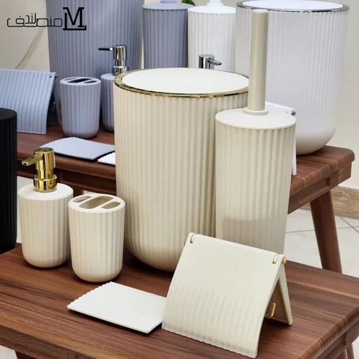 • پكيج محصول شامل: دارای سطل به ابعاد ۲۰×۲۶×۲۰ سانتی‌متر دارای توالت شور به ابعاد ۱۰×۳۹×۱۰ سانتی‌متر دارای جای مایع به ابعاد ۶×۱۶×۶ سانتی‌متر دارای جای مسواک و خمیردندان به ابعاد ۸×۱۱×۸ سانتی‌متر دارای جای دستمال به ابعاد ۱۵×۱۰×۳ سانتی‌متر